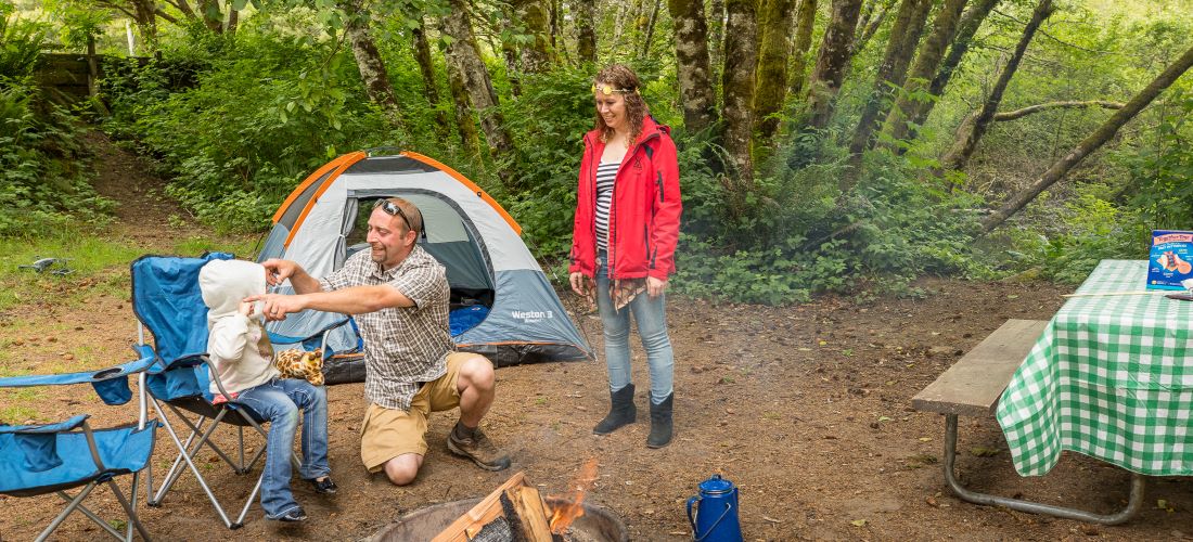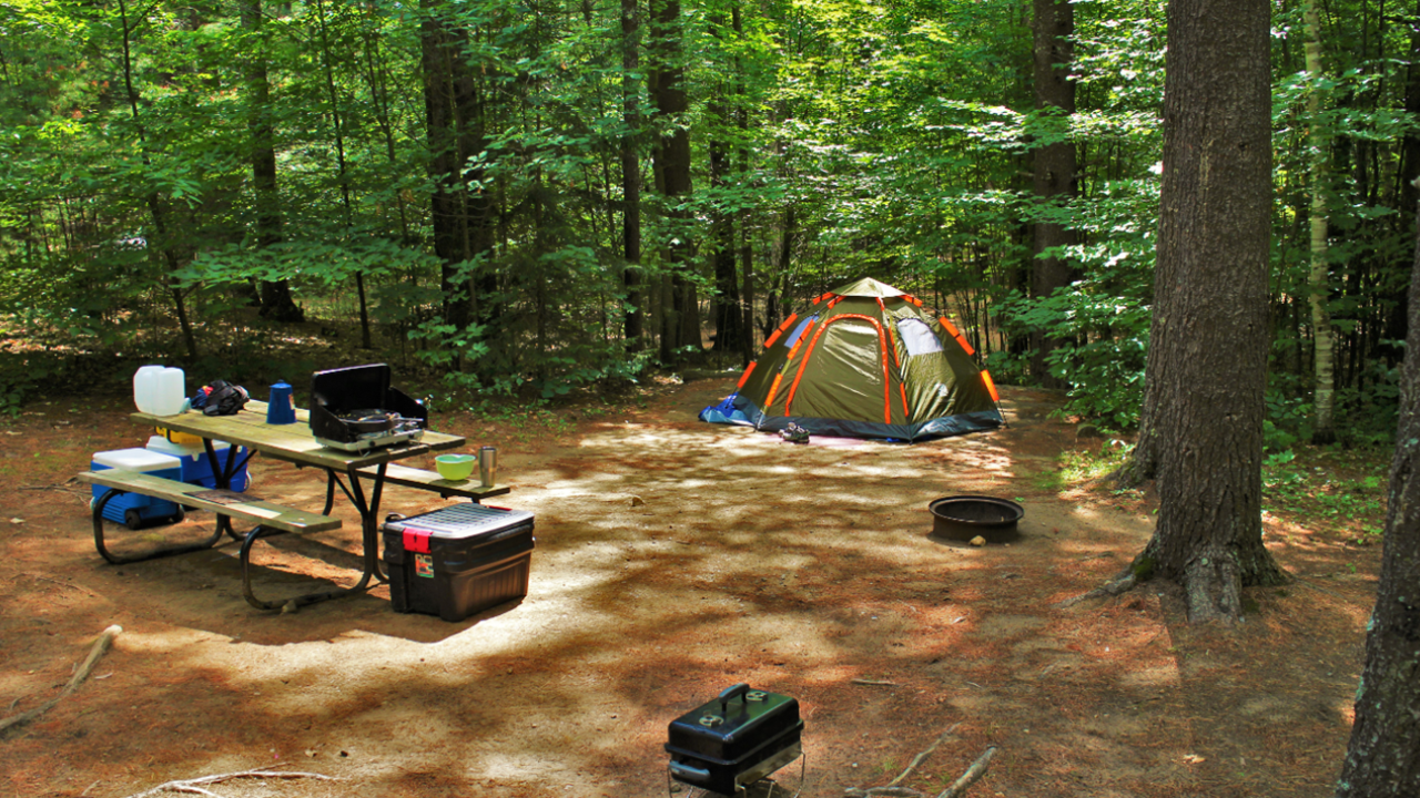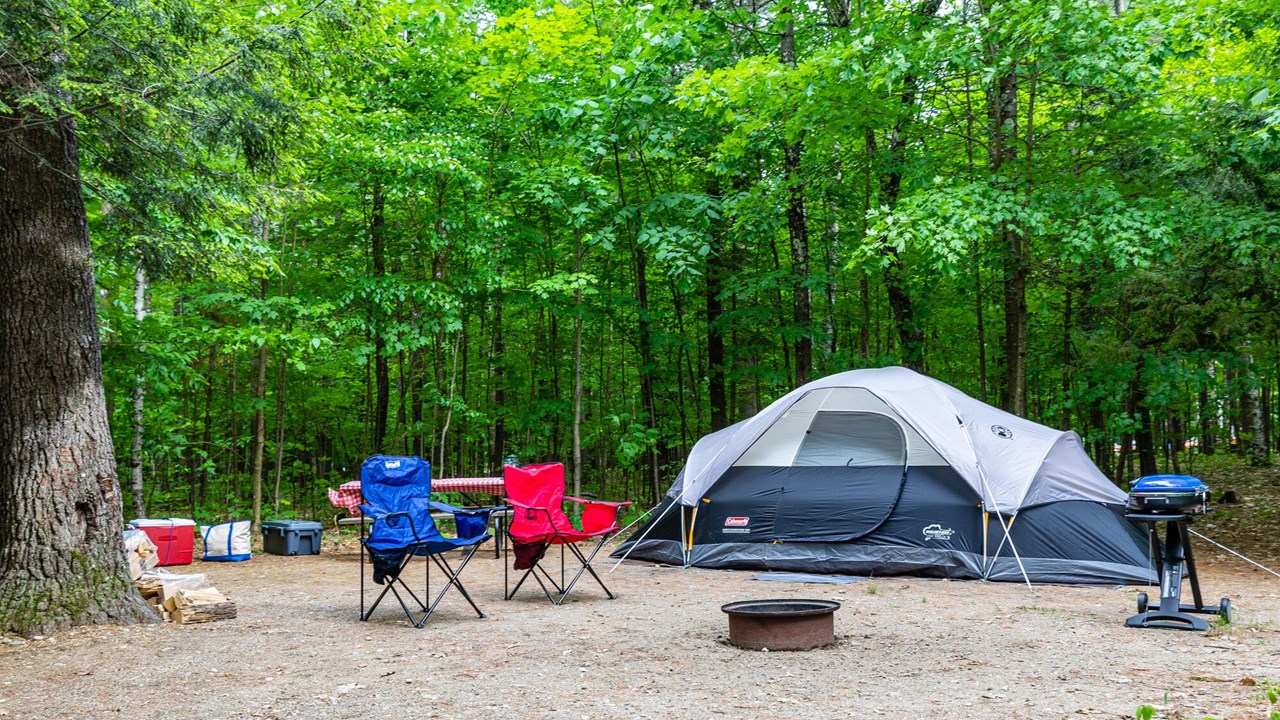 Upgrade your tenting experience with a Deluxe Tent site. Nestled among the trees, these sites feature a picnic table, fire ring, electricity, and a convenient charging station. Relax, unplug, and enjoy.